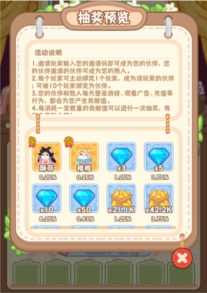 各位店长邀请好友程辉伙伴后,就能消耗贡献值参与抽奖,赢取瓜子、钻石等好礼,还有机会获得顶级员工。