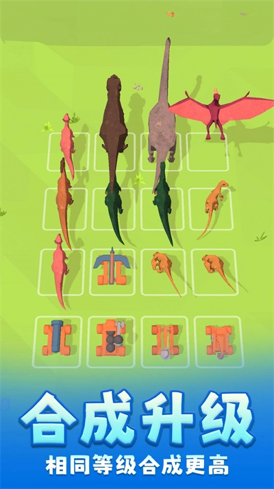 2、召集你的恐龙军团,开展进攻与征战,凭借战术赢得胜利,把相同等级的恐龙合成更高级别的,以此增强实力。