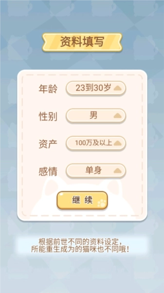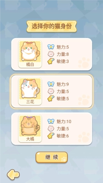 2、接下来选好猫咪的身份和天赋,就能正式开启猫生之旅了。