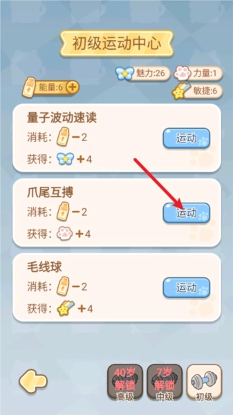 4、随着时间的推移,我们会解锁各式各样的玩法,就像在这里可以通过运动来提升力量一样。