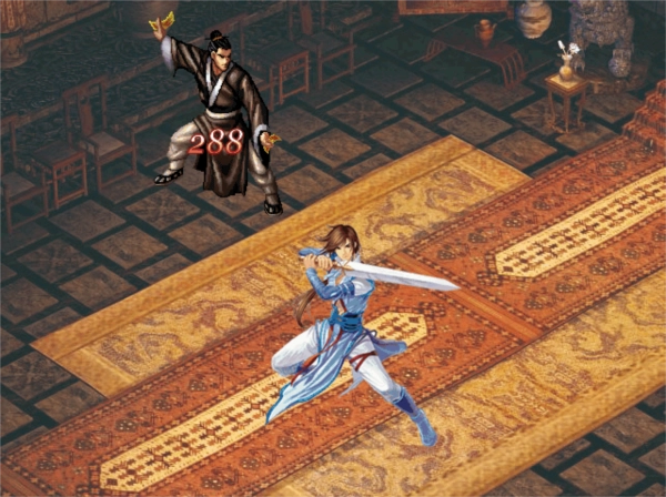 一日,正在蜀山修习武艺的北堂临风,突然被李逍遥叫了过去——对方想检验下他如今的功夫水准。就这样,主角迎来了第一场战斗,对手是蜀山弟子甲与蜀山弟子乙。要是这场比试不幸落败,李逍遥便会直接点明:“你的功夫还差得远呢,看来这任务得另寻他人了”,随即剧情结束,直接跳出字幕。(这可是开天辟地般的最快结局,哈哈哈)