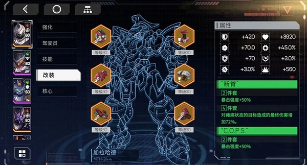 1、驾驶员所具备的能力会直接体现在机甲面板上,正如面板所呈现的那样,一名驾驶员能够贡献的战力包含三个部分。