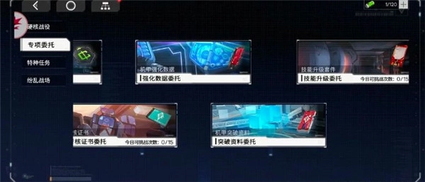 第三个是战区,没有体力去爬塔,获得的奖励能够用来在基地制造配件。