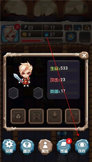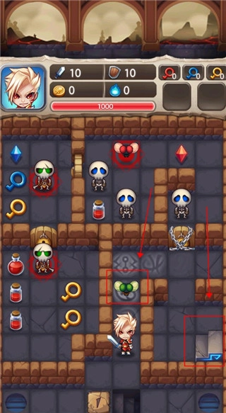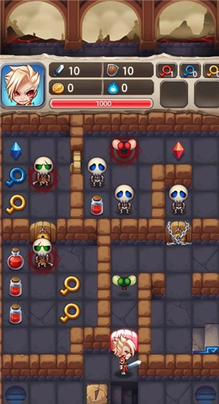 在收集钥匙的挑战关卡中,我们固然需要凭借智慧与逻辑推理来推进,但更关键的是角色的成长环节——玩家需收集红宝石、蓝宝石以提升攻击与防御属性,收集血瓶来增加生命值,通过持续强化各项属性,逐步提升自身的战斗力。