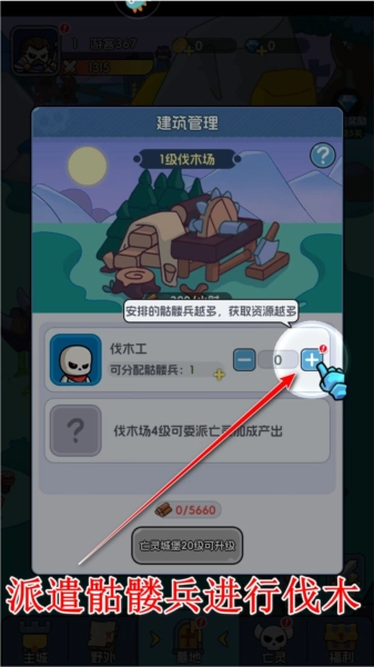 4.派遣骷髅兵进行伐木。