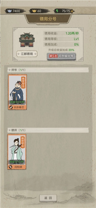 这是一款模拟经营类游戏,玩家将在游戏里开设一家镖局,通过持续完成任务来赚取收益,招募更多的伙伴和各类人才,逐步扩大镖局的规模,还能建立分部。感兴趣的小伙伴快来试试吧!