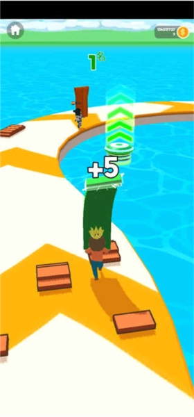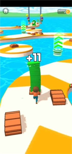 1、收集沿途的地板,搭建桥梁跨越水面,开辟捷径直达终点!