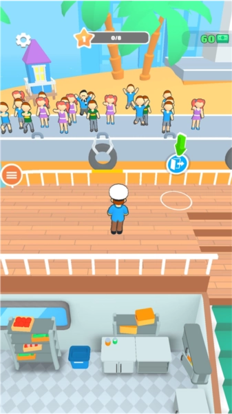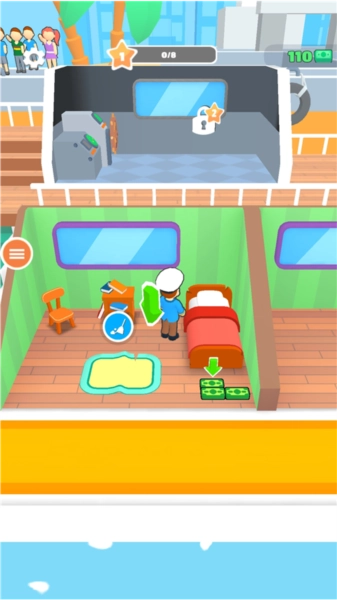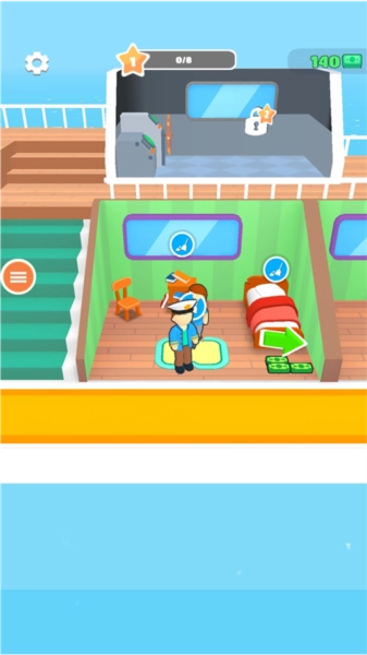 在《我是大亨》中,开局时只有玩家孤身一人,要到游戏后期才能解锁招募员工的功能。玩家除了在顾客退房后负责打扫房间,还得对房间内的设施进行升级,并且需要根据客户的具体需求来打造专属轮船,如此才能吸引更多旅客,进而获得更丰厚的经济效益。当在辽阔的大海上接待客户时,玩家还能欣赏到海面场景不断变化的美丽景致。