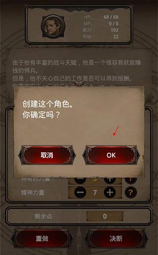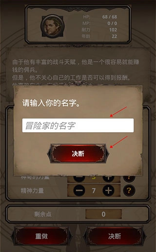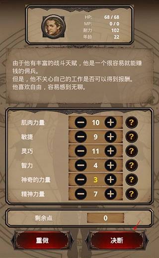 1、创建一名冒险家,点击重做按钮可修改你的能力与性格。