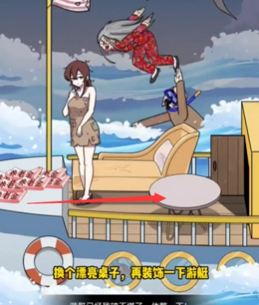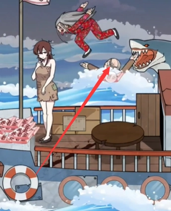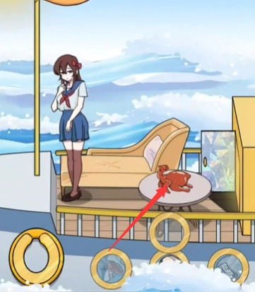 3、拖动养老金给鱼缸中的金鱼,为金鱼穿上救生衣;