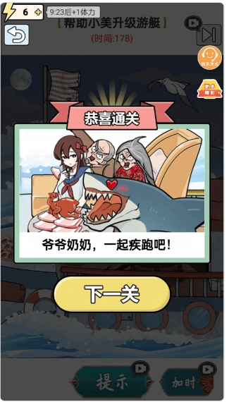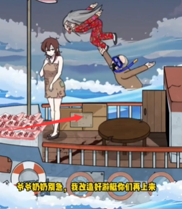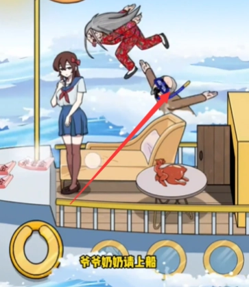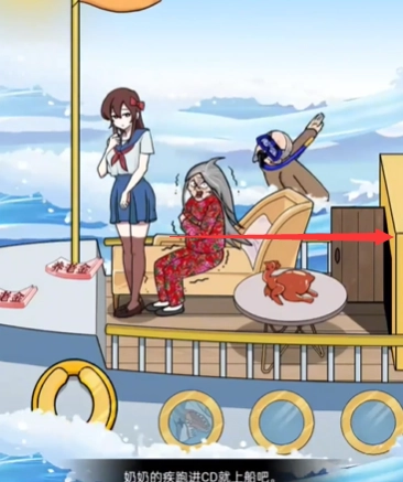 2、拖动养老金给窗外的老奶奶,将老奶奶带进机舱;