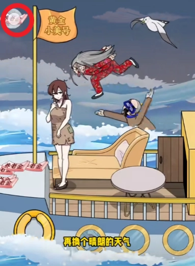 4、移动养老金将小美身后的纸箱升级成沙发床;
