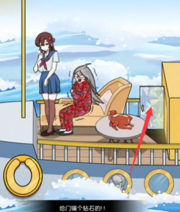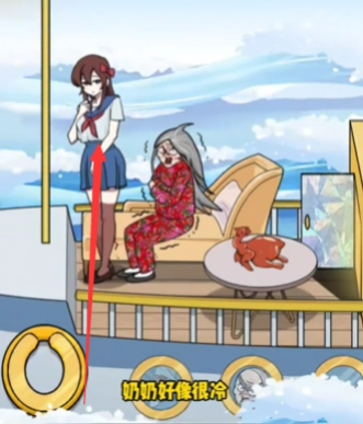 7、拖动养老金让老奶奶停下并将其拖动到小美身旁的座椅上;