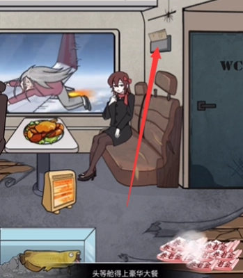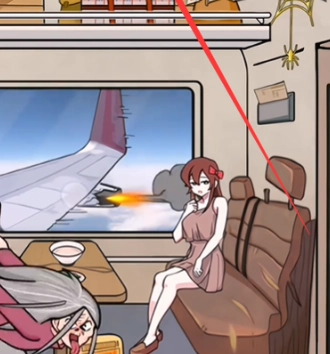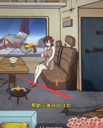 6、拖动养老金至窗外飞机引擎,修补引擎;