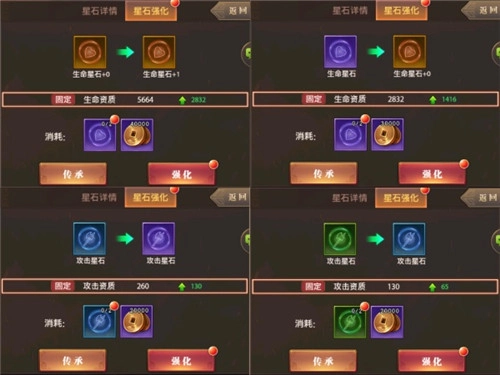 强化星石需要消耗一定数量的星石作为素材,强化等级越高,所需的星石数量也就越多。