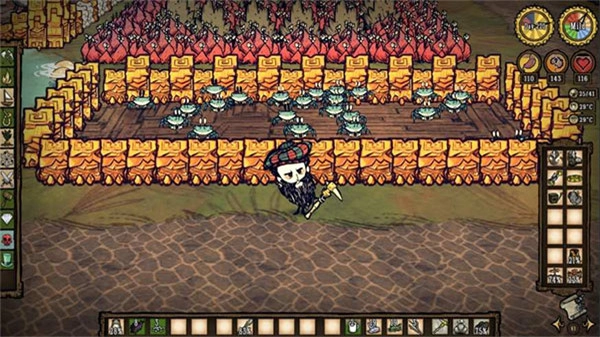 3、温热的石头可以在晚上放在火上加热,白天再取出来使用。新手角色威尔逊的胡须同样具有保暖效果。