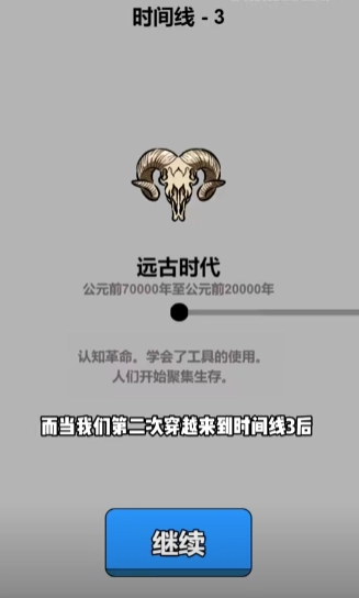 解锁时间线2,点击穿越来到另一条文明线路。