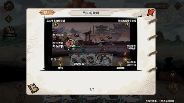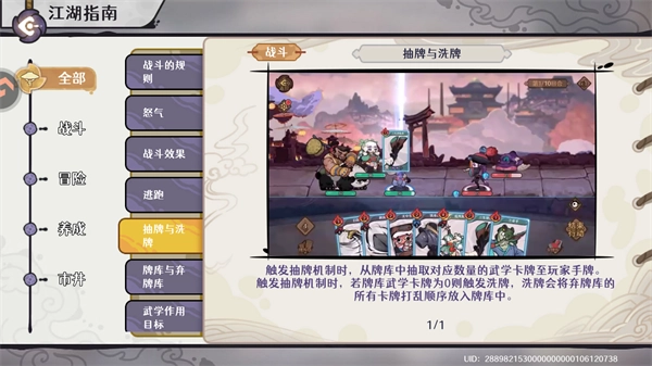 战斗中的牌库由布阵时携带的卡牌与对局内临时获取的卡牌共同组成。玩家在行动阶段使用的武学卡牌,会被移入弃牌库。