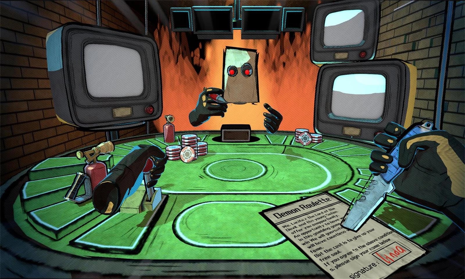 这是一款与恶魔展开回合制射击对决的生死赌局游戏,它融合了经典轮盘赌的核心玩法,使玩家在与恶魔的交锋中体验到极致的紧张与刺激。游戏内设有丰富多样的高难度试炼等待挑战,每场战斗都需要玩家绞尽脑汁。再配合充满压迫感的恶魔设计,营造出紧张恐怖的氛围,让玩家时刻感受到生死悬于一线的危机。