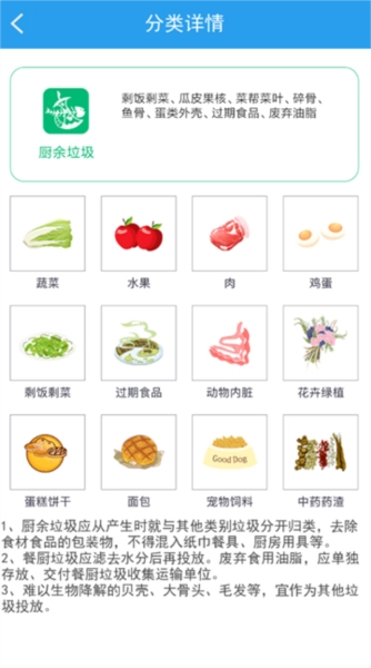 5、查看“厨余垃圾”,包括果皮、菜叶等易腐垃圾。