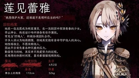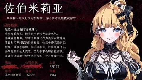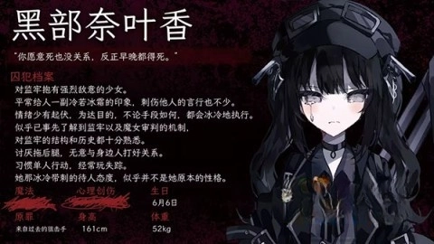 对监狱怀有强烈敌意的少女,常常以冷漠的表象来掩盖自己的真实情感。她对监狱的了解颇为深入,向来习惯独来独往,不会轻易与他人建立联系。