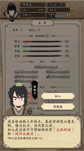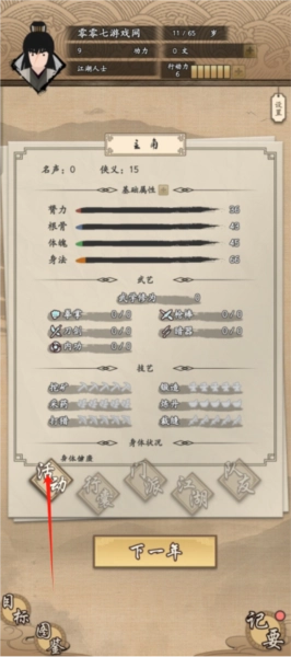 属性分配:根骨、悟性、臂力这类属性,会对武学的修炼速度以及战斗风格产生影响。