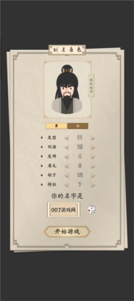 2、先设定好角色形象,再给自己取个名字,之后点击“开始”按钮。