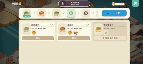 -解锁自动化功能:优先升级榨汁机和种植台的“昆虫自动化”模块,这样就能解放双手,让材料的生产与加工环节实现全自动运行,你只需专注于制作汽水和上架售卖即可。