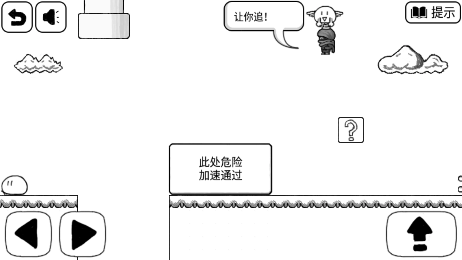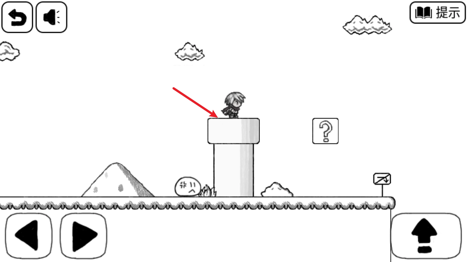 3、这里会出现一只团子怪,它会模仿你的动作,所以得先把它引过来,接着跳到水管边缘,要是跳在中间会被食人花攻击。