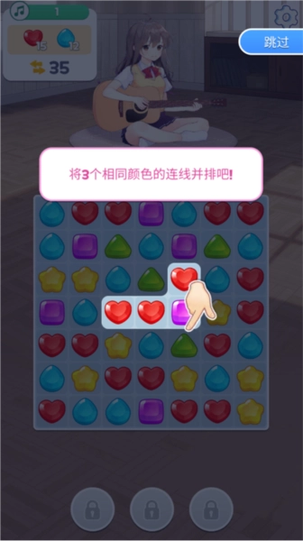 吉他少女三消是一款日系二次元风格的音乐节奏类三消游戏。在游戏中,你需要帮助一位热爱弹吉他的少女,让她的歌声被更多人听见。你可以轻松享受吉他的旋律,还能体验治愈的消除玩法。此外,游戏还为你准备了不同性格的少女,你可以根据自己的喜好进行培养,购买更多家居来装饰房间,快来试试吧!