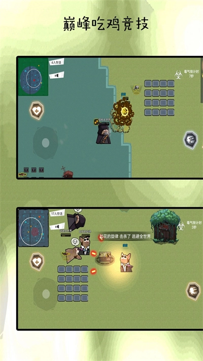 3、在巅峰吃鸡竞赛里,你会获得萌趣的动物头像,和其他玩家共同置身战场,凭借智慧与勇气较量,全力争取存活下去。