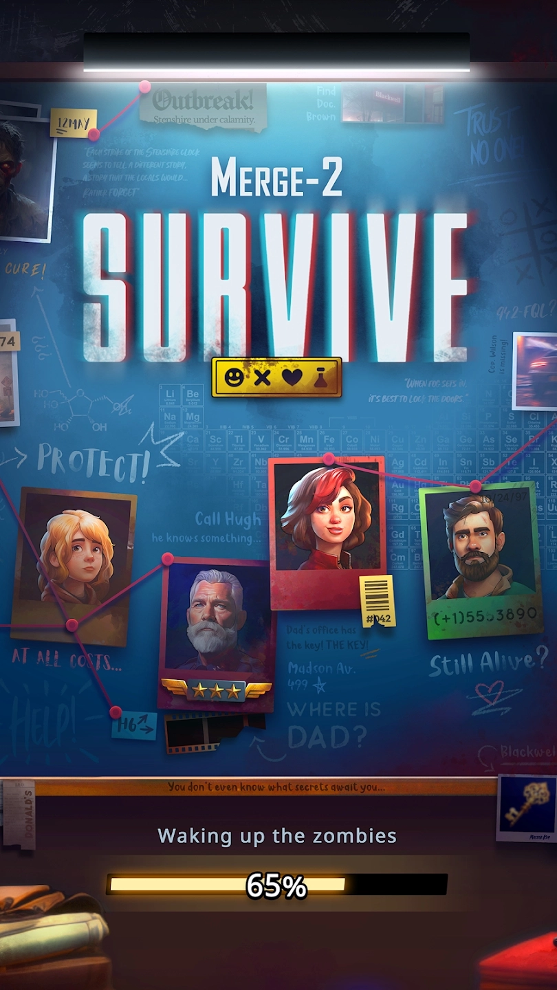 准备好开启一场冒险了吗?合并资源、侦察环境,用自己的方式战斗,在被僵尸占领的世界里绽放光芒。在《Merge2Survive》中,一切都围绕着生存的真正意义展开。穿上米娅的鞋子,勇敢直面挑战吧!你每一次的合并操作,都是向希望迈进的重要一步;每一场战斗,都是对你决心的考验。与亡灵的对决已经打响,你,准备好了吗?