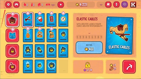 只需点击屏幕让旋转的指针停在指定位置,野牛就会以对应力道飞出去。最上方的一颗黄星代表最大弹力,能踢中右侧的大糖果人,之后基本只能听天由命;飞行时可践踏小熊人弹跳,还能使用火箭加速,途中部分糖果人会助你一臂之力,撞到警察糖果人会减速,速度不足时压到警察糖果人会直接被抓;每飞一段距离会遇到一扇大门,速度不够无法撞破,冲开最后一扇门就能回到超市。