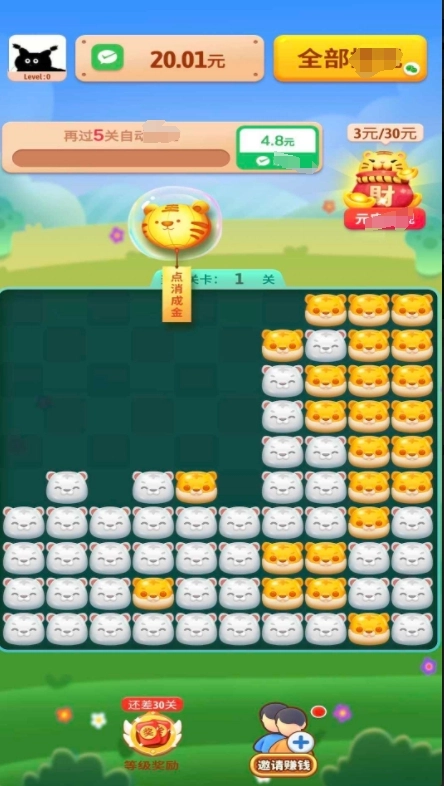 2、你可以通过点击相邻的同色棋子来完成消除,通关后领取丰厚的红包,享受轻松有趣的赚钱体验。