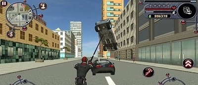 当绳索钩住建筑、大树这类目标时,角色会迅速弹射出去,靠近并攀爬上去;要是目标换成了人、汽车这类较小的物体,它们就会被直接拉到角色跟前。