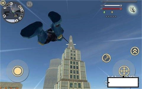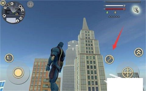 绳索的使用方法十分简单,大家只需选定一个目标点,像建筑、大树、汽车,乃至人都能直接使用,点击右侧的绳索按钮就能立刻发射出绳索钩住目标。