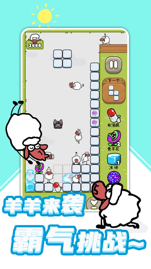 《羊羊俄罗斯方块》的核心目标十分明确:尽可能砸扁更多绵羊。这一目标兼具虐心与解压特质,能让玩家在游戏过程中释放压力,收获别具一格的体验。并且,随着游戏的推进,玩家会陆续遇到普通小白羊、披着狼皮的羊以及杀马特羊这三类不同的绵羊。