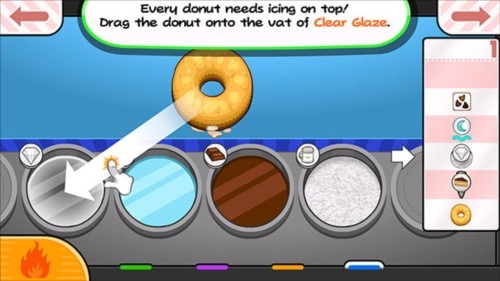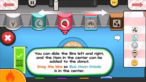6、待所有步骤都完成后,把做好的甜甜圈拖回订单区域,交付给顾客。