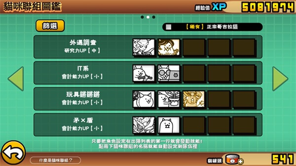 游戏初期,玩家仅能使用基础猫咪单位;随着游戏进程的推进,玩家可通过战斗获得金币与经验,进而解锁并升级更强力的猫咪。每只猫咪都具备独特的技能与属性,玩家需合理搭配猫咪阵容,以应对不同类型的敌人。