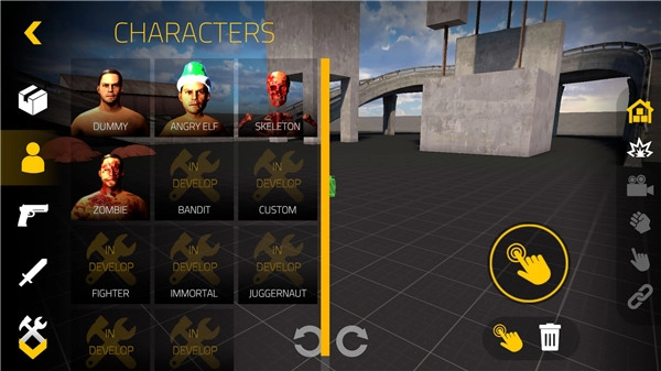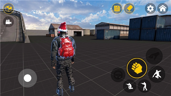 2、进入沙盒世界后,通过虚拟摇杆来操控角色完成移动、跳跃、蹲下以及射击等各类动作;
