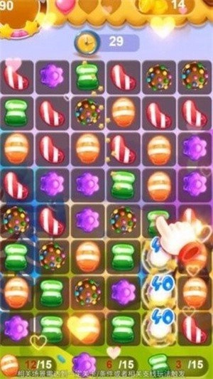 2、造型各异的糖果元素,借助合成的方式助力你顺利通关;