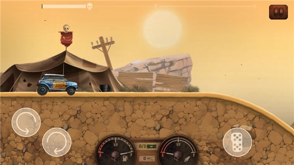 4、当汽油不足时,游戏就会结束;注意:车辆也不能侧翻,一旦侧翻游戏同样会结束。