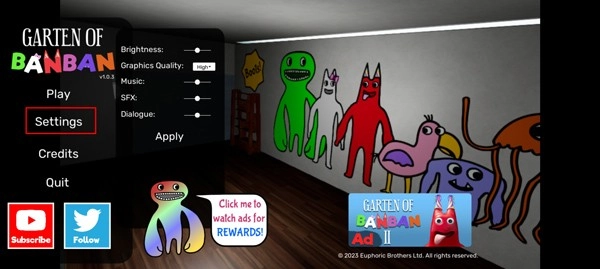 2、首先点击settings按钮进入设置菜单,调整画质、音效等相关参数以优化体验;
