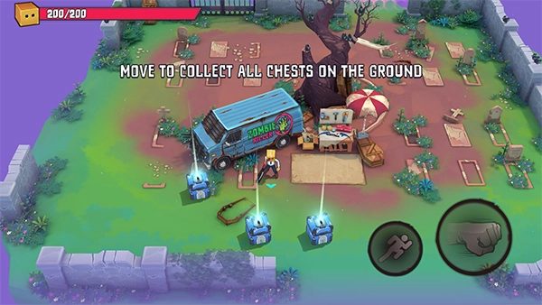1、首先欢迎来到本站带来的《盒子头僵尸必须死》,进入游戏首页后开始教程,玩家可通过在左侧区域滑动来控制角色移动;