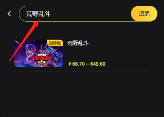 第三步:输入需要充值的关键词【荒野乱斗】,点击搜索就能获取结果。