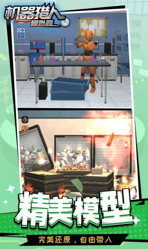 《机器猎人模拟器》是当下颇为热门的解谜冒险游戏,凭借3D立体的画面场景,玩家能在游戏中开启趣味十足的闯关冒险。游戏内的所有关卡任务,都能让玩家体验到更丰富、更精彩的内容。