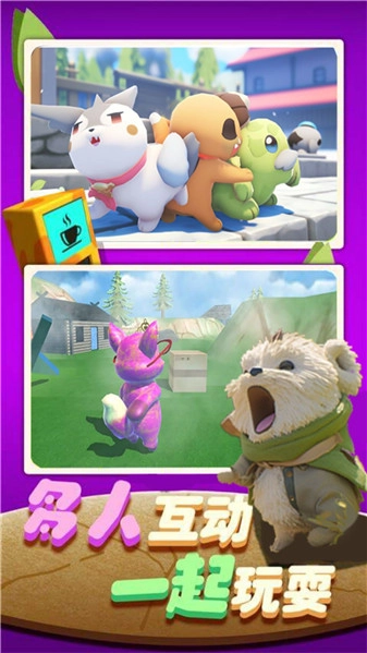 3、合作冒险,嬉戏打闹。丰富魔性的互动玩法,与其他动物互动才能收获更棒体验。