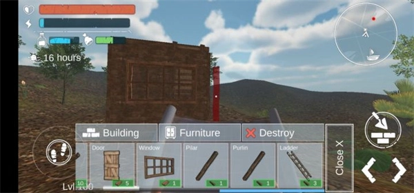 4、能够打开背包,借助收集到的木材来组装搭建安全屋。