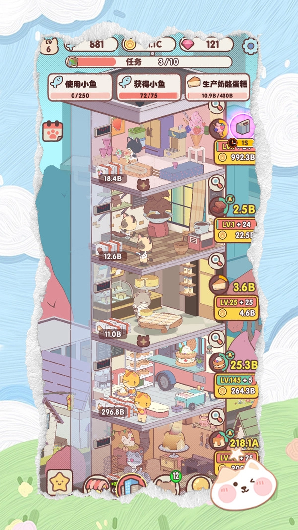 这款以猫咪元素为主题的卡通画风游戏中,玩家将经营一家甜品店,解锁可爱的猫咪伙伴,升级机器提升制作效率,打造更多美味甜品,完成店铺的经营目标。