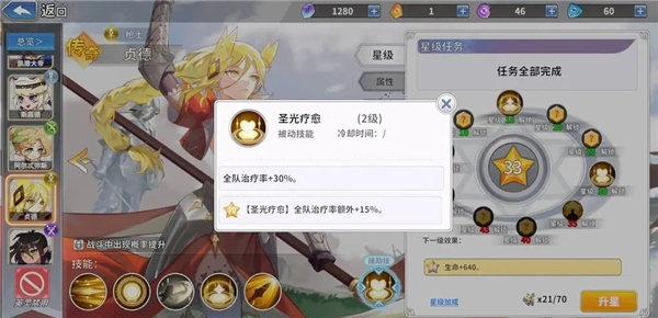 升星可以提升全体治疗效果,而贞德的技能是对抗boss的核心输出,因此优先推荐将贞德的星级拉满。